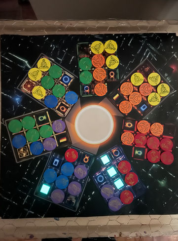 GridCore was playtested at the Game Designers of NC #Charlotte Meet at Divine Barrel Brewery with five players using Rulebook v7. Session date: March 11, 2026. Players: Nate, John, Chris, Cam, Bryan. Players moved through the turn structure without confusion: Ready → Choose → Reveal → Grid Responds They also navigated OnGrid movement, the OffGrid Spiral, and Jury Mode correctly. The scenario cards generated discussion, and a memorable moment - the reader made a funny sound f